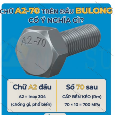 Bulong A2-70 là loại bulong được chế tạo từ thép không gỉ và được sử dụng phổ biến trong các mối ghép yêu cầu khả năng chống oxy hóa, chống ăn mòn tốt. Đây không phải là bulong chịu lực cao theo nghĩa truyền thống như 8.8 hay 10.9, mà là bulong được lựa chọn dựa trên điều kiện môi trường làm việc.