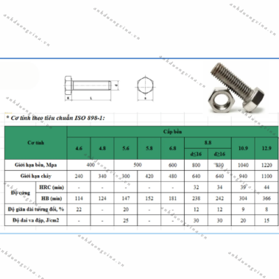 Ký hiệu 8.8 thể hiện đặc tính cơ học của bulong: