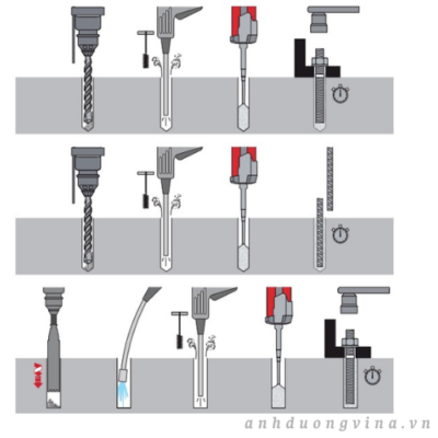 - Hilti HIT-RE 500 V3 hoặc HIT-HY 200: Chịu lực cao chịu ẩm tốt dùng cho tải trọng lớn.