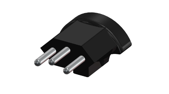 Phích cắm Type J có ba chân tròn, kích thước tương tự phích Type C.