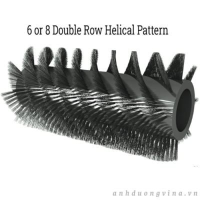 Kiểu lông chổi xoắn kép 6 hoặc 8 hàng (6. DRH hoặc 8. DRH): Kiểu lông chổi xoắn kép 6 hoặc 8 hàng (DRH) là một trong những thiết kế lông chổi công nghiệp được sử dụng rộng rãi nhất cho cả ứng dụng quét dọn thông thường và hạng nặng. Sự sắp xếp hình xoắn ốc đặc trưng của các sợi lông giúp cải thiện đáng kể hiệu quả thu gom rác thải. Kiểu lông chổi đa năng này có khả năng loại bỏ cả các hạt nhỏ và lớn – thu gom bụi bẩn, vụn gỗ, mảnh kính và rác thải bám sâu, trong khi khoảng cách xen kẽ giữa các hàng cho phép thu gom rác thải cồng kềnh hơn và các chất gây ô nhiễm lớn hơn. Cấu hình xoắn ốc DRH phổ biến trong máy quét đường phố, máy làm sạch bãi đậu xe và máy chà sàn nhà kho, nhờ khả năng xử lý nhiều loại chất thải khác nhau, từ các hạt mịn đến lá cây và mảnh vụn bao bì. Tương thích với tất cả các vật liệu lông chổi tiêu chuẩn – bao gồm sợi tổng hợp (polypropylene, nylon), sợi tự nhiên và các tùy chọn mài mòn – kiểu lông chổi này đảm bảo hiệu suất làm sạch tối ưu trên nhiều bề mặt và môi trường khác nhau
