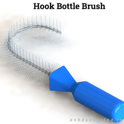 Cọ rửa chai có móc với thiết kế cong hoặc góc cạnh cho phép người dùng làm sạch xung quanh các khúc uốn cong trong đường ống, ống chữ U và bình thí nghiệm. Cấu tạo tiện dụng của nó làm cho nó lý tưởng để làm sạch các khu vực cao hoặc khó tiếp cận trong dây chuyền đóng chai, nhà máy chưng cất, hệ thống đường ống và các cơ sở sản xuất đồ uống. Để đảm bảo độ bền tối đa, khả năng chống lại hóa chất mạnh và tuổi thọ cao, cọ rửa chai có móc thường được chế tạo từ kim loại chống ăn mòn và gỉ sét.