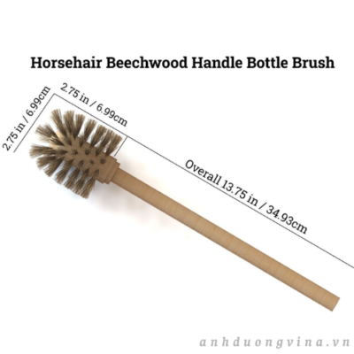 Chổi cọ rửa chai cán gỗ thích hợp cho cả sử dụng thương mại và dân dụng. Lông chổi được luồn vào các lỗ khoan trên cán và cố định bằng ghim bấm.