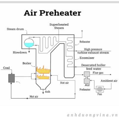 Bộ gia nhiệt sơ bộ không khí (APH) sử dụng khí thải đã được thu hồi để làm nóng không khí đi vào, giúp tăng hiệu suất nhiệt của lò hơi. Sau khi truyền nhiệt cho không khí, khí thải nguội đi và được dẫn vào ống khói. Bộ gia nhiệt sơ bộ không khí có hai loại: loại thu hồi nhiệt và loại tái sinh.