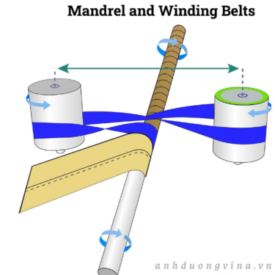 Trục cuốn – một thanh thép hình trụ dài – đóng vai trò là khuôn để quấn các lớp giấy. Đường kính trong của lõi được xác định bởi kích thước trục cuốn, trong khi độ dày thành được quyết định bởi số lượng và độ dày của các lớp giấy. Tùy thuộc vào yêu cầu sản phẩm, số lượng lớp giấy có thể thay đổi từ 1 đến 50, với hầu hết các ứng dụng thương mại nằm trong khoảng từ 3 đến 30 lớp. Những tiến bộ trong công nghệ trục cuốn, chẳng hạn như trục cuốn có thể điều chỉnh hoặc mở rộng, cho phép các nhà sản xuất nhanh chóng thay đổi kích thước lõi và đường kính trong, giúp tăng năng suất và giảm thời gian sản xuất lõi băng keo và nhãn tùy chỉnh. Trong quá trình quấn, lực căng, tốc độ và lượng keo dán phải được kiểm soát cẩn thận để đảm bảo liên kết lớp đồng đều và dung sai kích thước chính xác.