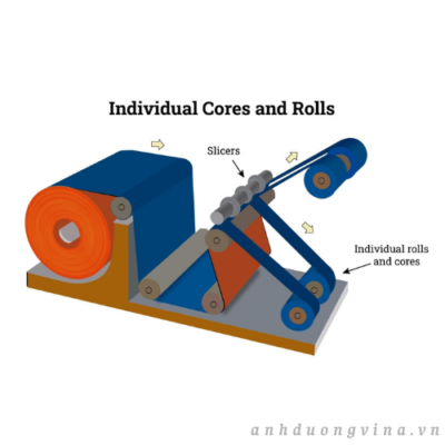 Khi sử dụng lõi riêng lẻ, vật liệu băng keo trải qua một số quy trình để cải thiện độ bền, khả năng sử dụng và độ thẳng hàng trên lõi. Sau các bước này, máy cắt sẽ cắt băng keo thành các khổ cuộn đã được chỉ định. Sau đó, các dải băng keo được quấn quanh lõi nhựa hoặc lõi giấy. Chiều dài băng keo được sử dụng được xác định bởi thiết kế và thông số kỹ thuật của cuộn. Khi các cuộn được sử dụng hết, chúng được đẩy ra và một bộ lõi mới được chuẩn bị cho lô tiếp theo.