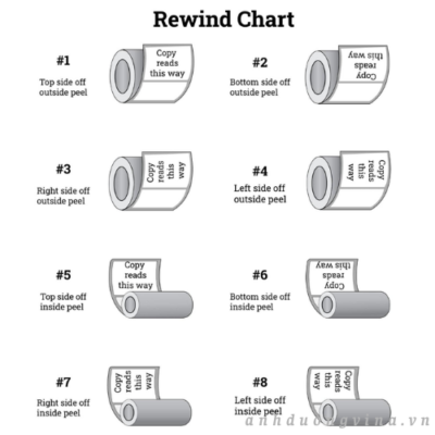Vị trí cuộn lại được xác định trong quá trình sản xuất khi cuộn nhãn được gắn vào lõi.