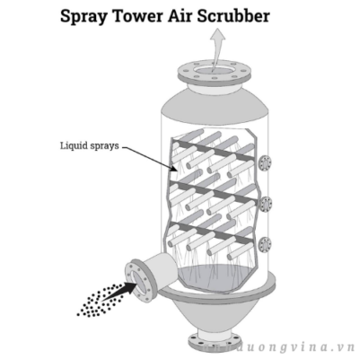 Trong quy trình này, tháp phun rửa khí thải sẽ đẩy khói ô nhiễm qua một lớp sương mù chất lỏng, giúp thu giữ và loại bỏ các hạt khí. Tháp phun rửa khí thải có hiệu quả trong việc giữ lại các hạt nhỏ đến 10 micron và cũng có thể loại bỏ các khí như sulfur dioxide, axit cromic, hydro sulfide, amoniac, clorua và florua. Công nghệ này thường được sử dụng như một thiết bị kiểm soát ô nhiễm không khí ướt trong các ngành công nghiệp hóa chất, mạ kim loại và đốt rác thải đô thị để kiểm soát khí thải và đáp ứng các quy định về chất lượng không khí.