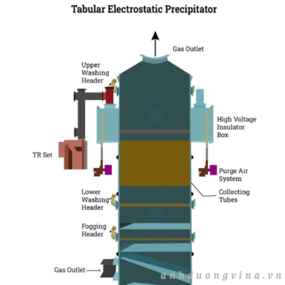 Thiết bị lọc tĩnh điện ướt (WESP) sử dụng sự kết hợp giữa điện trường và tưới chất lỏng liên tục để thu gom và loại bỏ cả chất ô nhiễm dạng hạt và dạng khí, lý tưởng cho việc thu giữ sương axit, sol khí siêu nhỏ, các hợp chất kết dính hoặc dính, và các giọt chất lỏng (bao gồm cả sương axit sulfuric). Các hạt mang điện tích âm bám vào các tấm thu gom, nơi chúng được làm sạch và xả liên tục bằng tia nước hoặc nước ngưng tụ, đảm bảo hiệu quả loại bỏ hạt cao liên tục và giảm nguy cơ tái nhiễm.