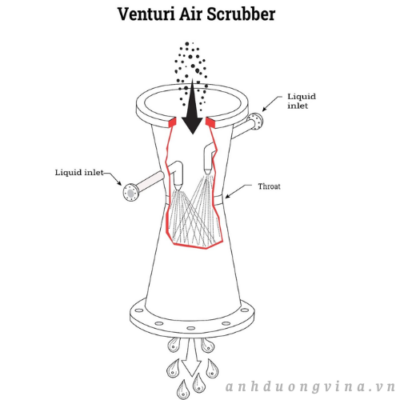 Máy lọc khí Venturi sử dụng nguyên lý phun sương khí do vận tốc để loại bỏ bụi, khói và các hạt mịn khỏi luồng khí trong quá trình sản xuất. Họng Venturi tạo ra giao diện không khí-nước tốc độ cao, buộc không khí ô nhiễm đi qua một đoạn hẹp, nơi nó được trộn lẫn mạnh mẽ với các giọt nước. Quá trình này bao bọc ngay cả các hạt siêu mịn, sau đó được loại bỏ khi các giọt nước lắng xuống trong bộ tách hoặc bể chứa phía hạ lưu. Các ngành công nghiệp như sản xuất hóa chất, khai thác mỏ và dược phẩm dựa vào máy lọc Venturi vì khả năng loại bỏ khí và hạt bụi hiệu quả cao, đặc biệt khi xử lý các chất ô nhiễm bám dính, sương axit hoặc bụi gây khó chịu.