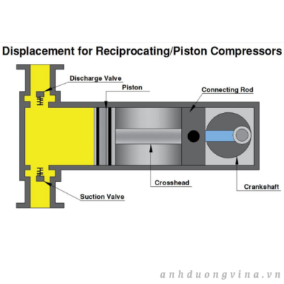 • Lưu lượng: Được đo bằng feet khối mỗi phút. Lưu lượng của máy nén piston/piston là tích của thể tích xi lanh giai đoạn đầu và số vòng quay của máy nén trong một phút. Lưu lượng của máy nén trục vít quay là tích của thể tích hút trên mỗi ren và số thùy rôto dẫn động.