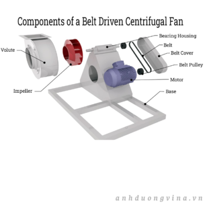 Các bộ phận cơ bản của quạt ly tâm được hỗ trợ bởi ổ trục, khớp nối, nắp chụp, lưới bảo vệ, mặt bích, bộ phận cách ly và nhiều bộ phận máy tiêu chuẩn khác. Các bộ phận chính đóng vai trò quan trọng trong hiệu quả hoạt động của quạt ly tâm và mang lại hiệu suất tối ưu. Yếu tố thiết yếu của quạt ly tâm là cánh quạt, thường được gọi là bánh xe hamster, và yếu tố này xác định loại quạt ly tâm.