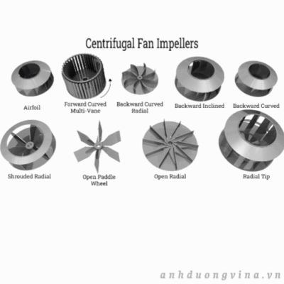 Thành phần quan trọng và đặc điểm nổi bật của quạt ly tâm là cánh quạt, có thể có nhiều hình dạng khác nhau để đáp ứng nhu cầu của các ứng dụng khác nhau. Có chín loại cánh quạt khác nhau. Như có thể thấy, hình dạng, thiết kế và cánh của mỗi loại đều khác nhau và đó là điểm khác biệt giữa chúng. Chức năng của cánh quạt được thiết kế để chuyển đổi chuyển động quay của động cơ thành động năng, đẩy không khí chuyển động theo một hướng cụ thể với tốc độ cao hơn.