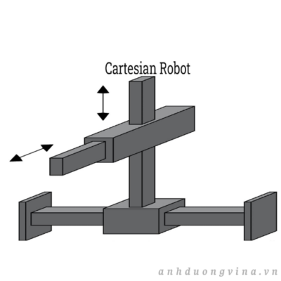 Robot Cartesian: Robot Cartesian được cấu tạo từ ba khớp lăng trụ. Do đó, công cụ này chỉ có thể chuyển động tuyến tính trên mỗi trục nhưng vẫn có thể tạo ra các chuyển động tròn thông qua các mô hình động học cho phép nội suy tròn.