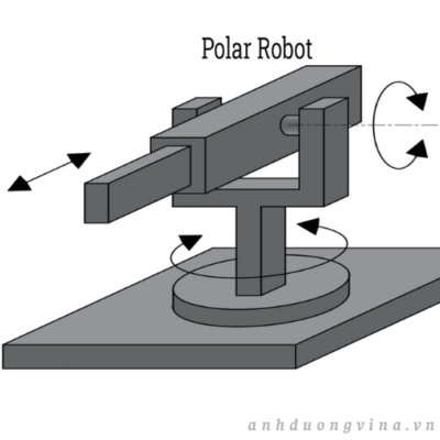 Robot cực: Robot cực, còn được gọi là robot hình cầu, sử dụng hệ tọa độ cực ba chiều r, θ và φ. Thay vì có vùng làm việc hình hộp chữ nhật, robot cực có phạm vi chuyển động hình cầu. Phạm vi chuyển động của chúng có bán kính bằng chiều dài của khớp nối giữa đầu cuối trục (EOAT) và khớp quay gần nhất. Cấu hình này cho phép robot cực có tầm với xa nhất so với các loại robot khác với cùng chiều dài cánh tay. Tầm với của robot cực có thể được mở rộng hơn nữa bằng cách sử dụng khớp nối thứ hai được kết nối bởi một khớp lăng trụ. Do tầm với rộng, robot cực thường được sử dụng trong các ứng dụng xếp dỡ máy móc.
