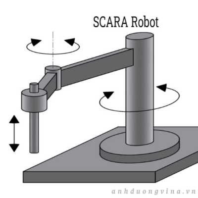 Cánh tay robot khớp nối linh hoạt có chọn lọc (SCARA): SCARA là một loại robot có cánh tay linh hoạt theo phương ngang (mặt phẳng XY) nhưng cứng theo phương thẳng đứng (trục Z). Chuyển động tịnh tiến trên một mặt phẳng duy nhất mô tả đặc tính “linh hoạt có chọn lọc” của nó. SCARA có hai khớp nối, hai khớp quay và một khớp tịnh tiến. Các khớp nối và đế được kết nối bằng các khớp quay cùng hướng trên một trục. Khớp tịnh tiến chỉ dùng để nâng hoặc hạ bộ phận điều khiển đầu ra (EOAT). Vùng làm việc của SCARA tạo thành hình xuyến. Ứng dụng của nó tương tự như robot hình trụ.