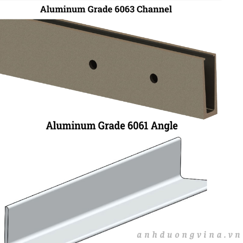 Các thanh nhôm hình chữ U thường có độ dày thành từ 1/16 inch đến 1/4 inch, đáp ứng nhu cầu tải trọng và thiết kế đa dạng trong các ứng dụng làm kệ, tủ và khung.