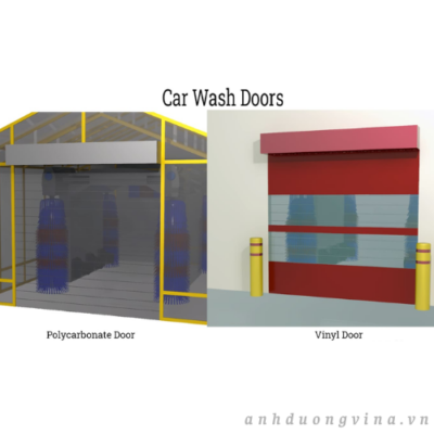 • Cửa cuốn bằng nhựa vinyl – Hoạt động nhanh và chịu va đập tốt, cửa cuốn bằng nhựa vinyl được thiết kế cho các trạm rửa xe có lưu lượng xe cao, nơi chu trình nhanh và tính linh hoạt là yếu tố quan trọng, mặc dù chúng có độ an ninh thấp hơn một chút so với cửa polycarbonate cứng hoặc cửa cách nhiệt.