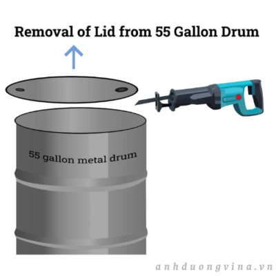 Thùng 55 gallon có thể có nắp hàn cố định (closed head) hoặc nắp tháo rời (open head). Loại nắp hàn thường dùng để chứa chất lỏng kín. Để biến thành thùng đốt rác, cần cắt bỏ nắp trên cẩn thận bằng đèn cắt, cưa lọng hoặc dụng cụ mở thùng chuyên dụng (giống dụng cụ mở lon công nghiệp lớn) để cắt sạch và an toàn. Với thùng nắp tháo rời, chỉ cần tháo vòng kẹp snap-ring là dễ dàng. Dù loại nào, hãy giữ lại nắp để dùng sau này làm nắp đậy thùng đốt hoặc lưu trữ an toàn giữa các lần dùng. Việc tháo nắp đúng cách giúp giảm nguy cơ chấn thương và tăng an toàn khi lắp ráp thùng đốt rác.
