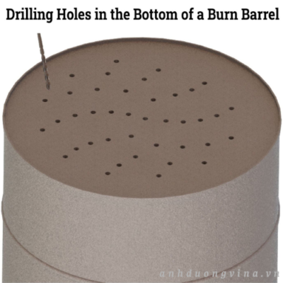 Thùng đốt rác hiệu quả cần lỗ thông gió đường kính 0.5-0.75 inch, đặt đều ở phần dưới 1/3 thân và đáy thùng. Điều này tăng lưu thông không khí, hỗ trợ đốt cháy hoàn chỉnh, giảm khói, đồng thời tránh làm yếu cấu trúc do khoan quá nhiều lỗ.