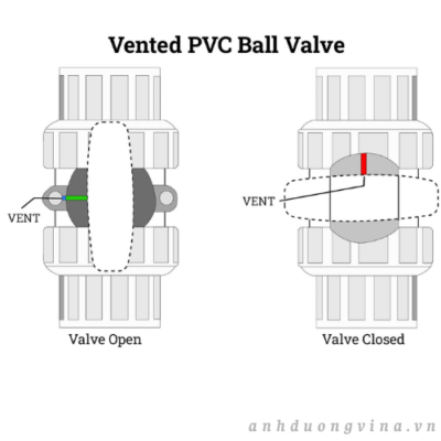 Van bi thông hơi bằng PVC được thiết kế để tự động giảm áp suất hệ thống, với lỗ thông hơi được khoan chính xác trên quả cầu. Lỗ thông hơi này cho phép chất lỏng và khí bị kẹt thoát ra ngoài khi van đóng, giảm thiểu nguy cơ tích tụ áp suất, rò rỉ hoặc nổ. Có cả thiết kế thông hơi bên trong và bên ngoài, van bi thông hơi thường được sử dụng trong các hệ thống vòng kín, đường ống khí nén và các quy trình chất lỏng nguy hiểm, nơi áp suất bị kẹt có thể tạo ra nguy hiểm về an toàn cho nhân viên bảo trì hoặc thiết bị.