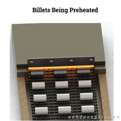 Khi phôi được đưa đến nhiệt độ lý tưởng cho quá trình ép đùn, nó được đặt vào một giá đỡ, giúp giữ cho phôi được căn chỉnh chắc chắn bên trong máy ép đùn. Giá đỡ nâng đỡ phôi trong giai đoạn đầu của quá trình ép. Một khối chặn gắn vào pít tông đảm bảo không có nhôm nóng chảy bị thất thoát ngược trở lại trong quá trình này, duy trì áp suất cần thiết và đảm bảo dòng chảy đều qua khuôn – những yếu tố quan trọng để sản xuất các chi tiết và biên dạng nhôm đồng nhất cho nhiều ứng dụng kiến trúc và công nghiệp.