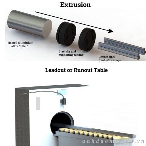 Trong quá trình ép đùn, một xi lanh thủy lực mạnh mẽ tạo áp lực lớn lên phôi, ép nhôm đã được làm mềm đi qua khuôn thép. Hình dạng mặt cắt ngang của khuôn quyết định hình dạng cuối cùng của sản phẩm nhôm ép đùn . Để đảm bảo chất lượng và tuổi thọ của khuôn, nitơ lỏng hoặc các hệ thống làm mát chuyên dụng thường được sử dụng cho khuôn ép đùn và phôi, giảm nguy cơ oxy hóa hoặc biến dạng nhiệt có thể ảnh hưởng đến chất lượng cấu trúc và thẩm mỹ của sản phẩm ép đùn hoàn thiện. Sản phẩm ép đùn, dù dùng cho hoàn thiện nội thất hay ốp ngoại thất, đều thể hiện đường nét sắc sảo và độ chính xác về kích thước mà người mua và nhà sản xuất công nghiệp yêu cầu.